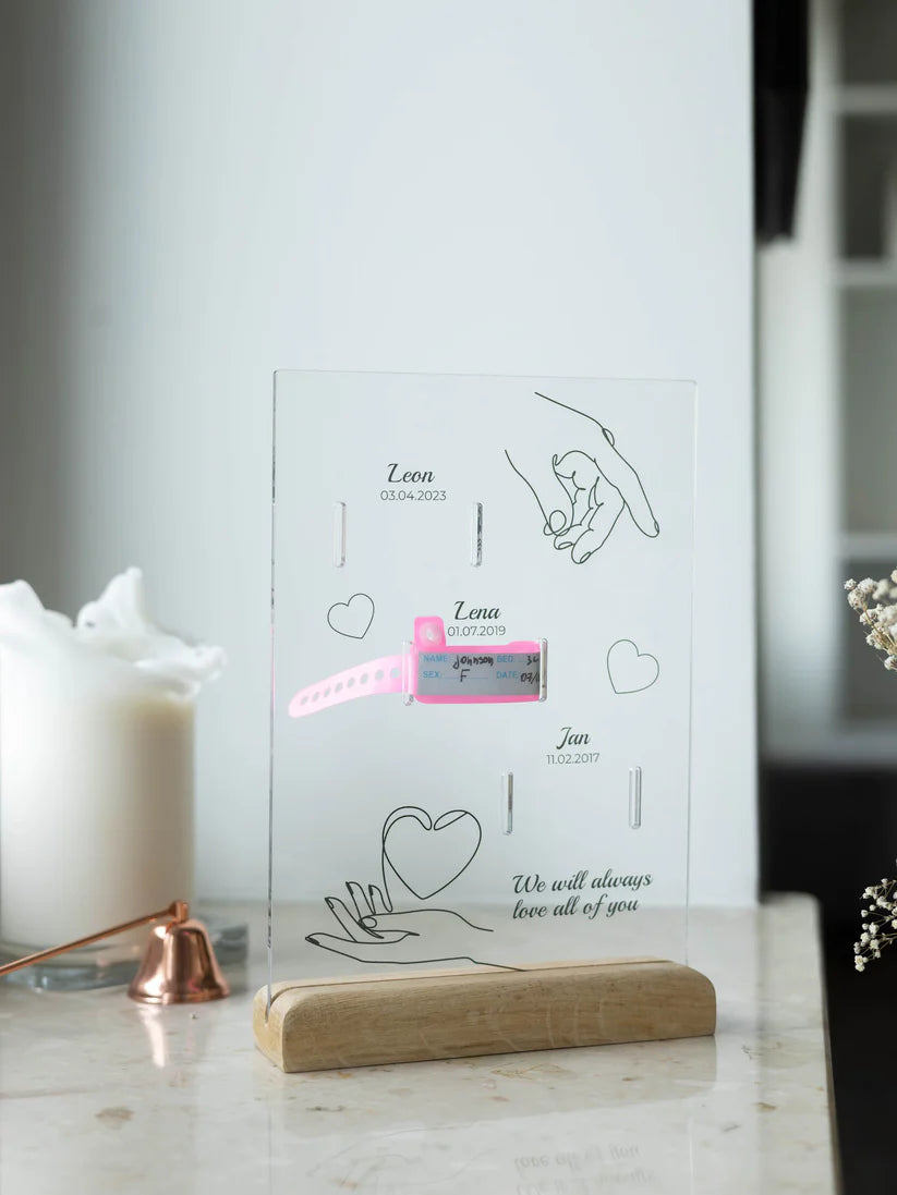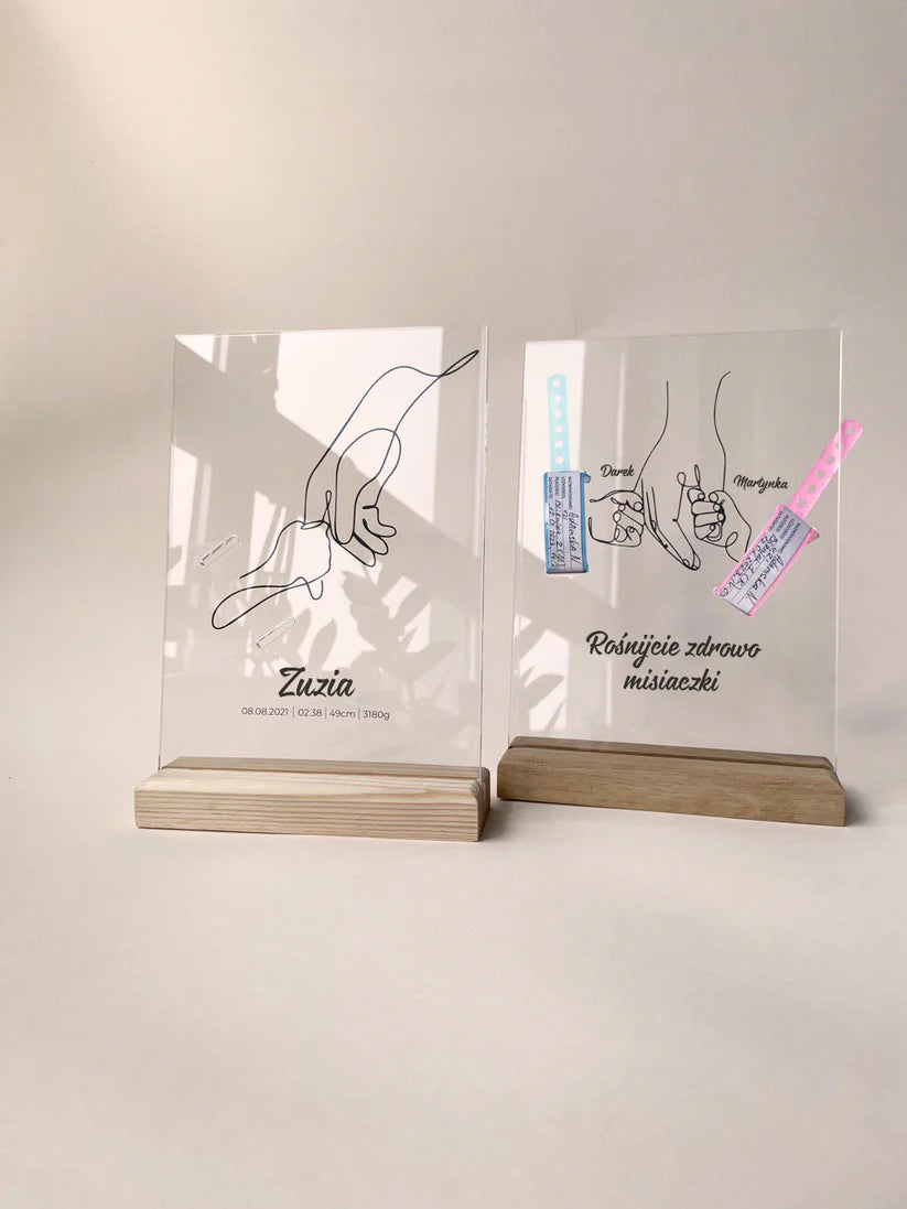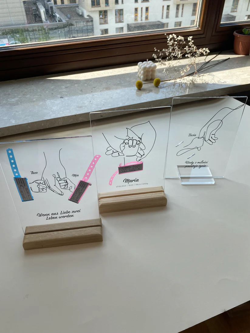 Personalized Plaque With a Hospital Armband and "Ale Radość" Notes